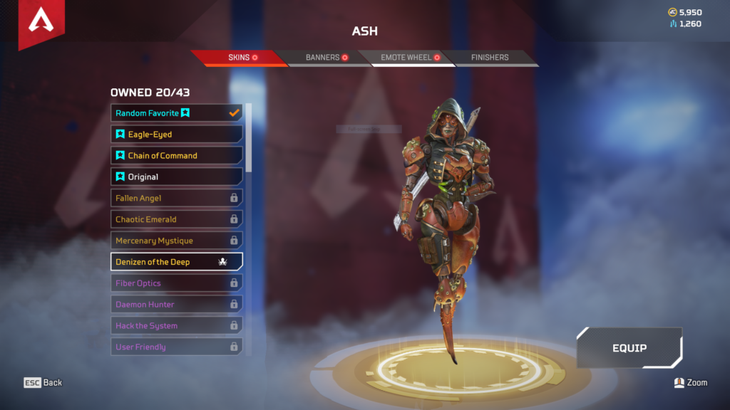 Ash Denzien of the Deep is a more organic skin, seeming to transform Ash into a deep-sea creature. Her face is especially creepy, looking like it’s one with the creatures and coral found in the depths of the ocean.