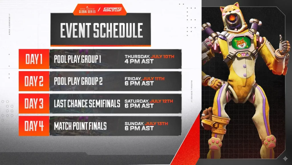 Todays news means that teams know exactly where they are heading if they perform well across the remainder of the Split 1 Pro League. The Esports World Cup schedule has the Apex Legends event taking place from July 10 until July 13.