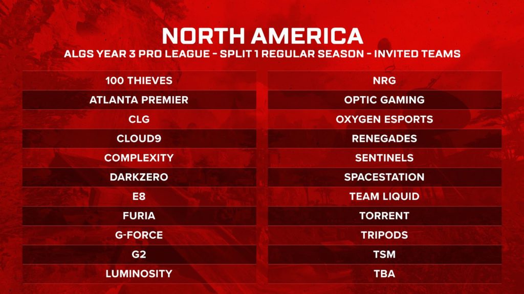 As part of the ALGS year 3 announcement EA unveiled the 22 invited teams per region. Across the 5 different regions, EA listed exactly which teams had been invited. Except in North America. In this region, only 21 teams were announced – with one slot being left as “TBA” on the announcement graphic.