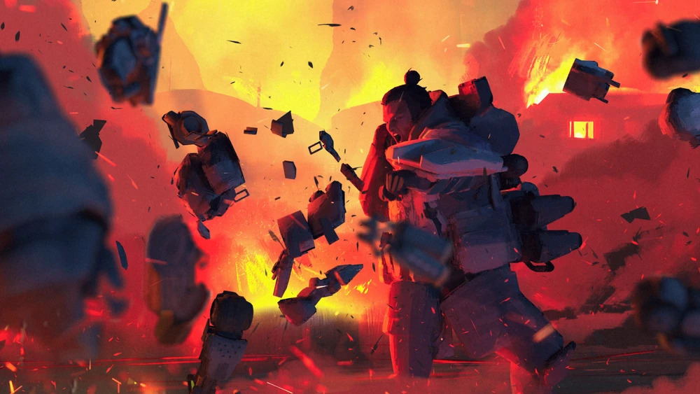 - Aiming down sights deploys a gun shield that blocks incoming fire.