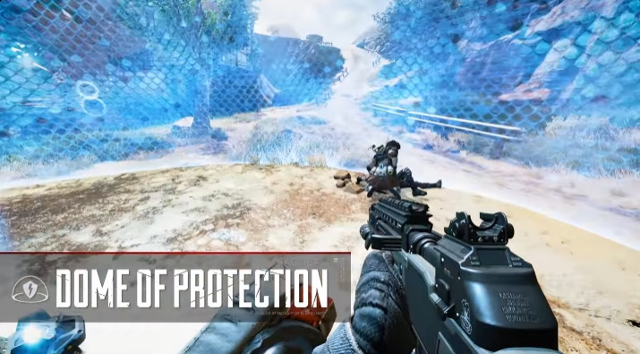 - The dome shield stops all incoming and outgoing bullets and projectiles while allowing players to move through it.