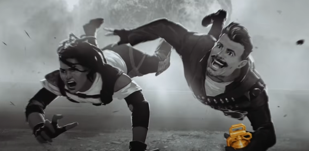 Fast forward to Season 8’s official launch trailer where we see the elaborate celebrations as Fuse joined the Apex games. Maggie saw Fuse’s departure to the Apex games as an act of betrayal of Salvo’s people, and so Maggie pulled off quite the takeover. Maggie set off explosions over Kings Canyon during the celebrations, and later managed a takeover of the games themselves with the Chaos theory event.