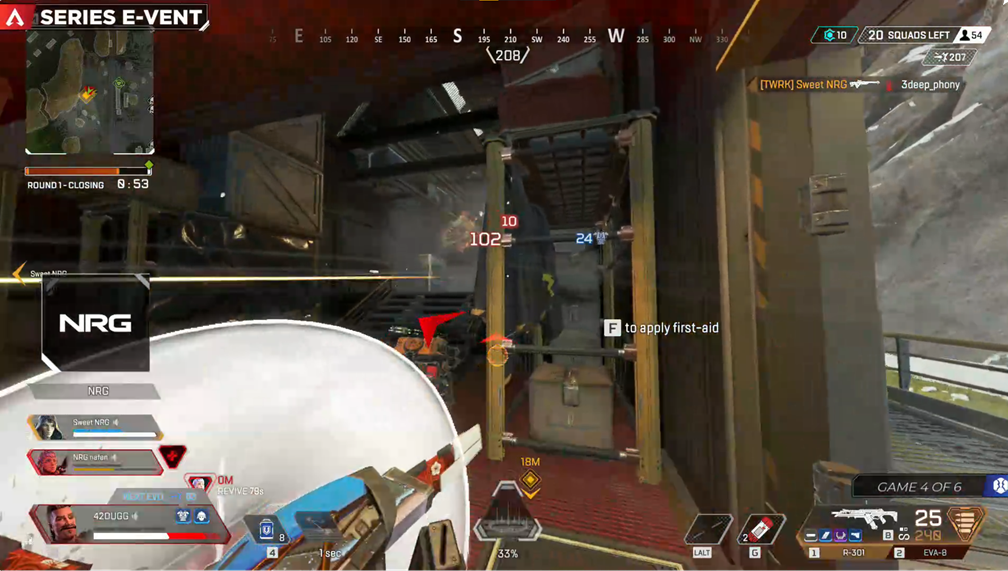 NRG weren’t impressed with Apex’s newest legend Ash, and swapped their Fuse, Ash, Valkyrie combination. Instead, they used Horizon, Fuse and Caustic. Remember, NRG had decided they weren’t playing ‘seriously’ in this tournament and in most people’s eyes had no chance of winning.