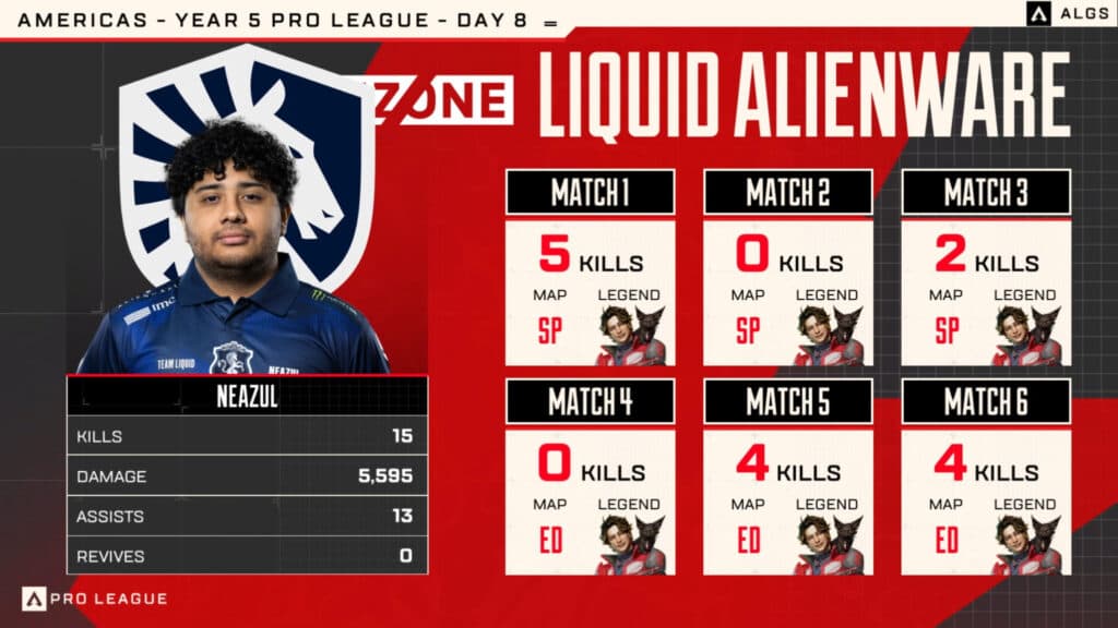 On fire today in particular was Neazul, with the Team Liquid stalwart showing how powerful new Legend Sparrow can be in the ALGS.