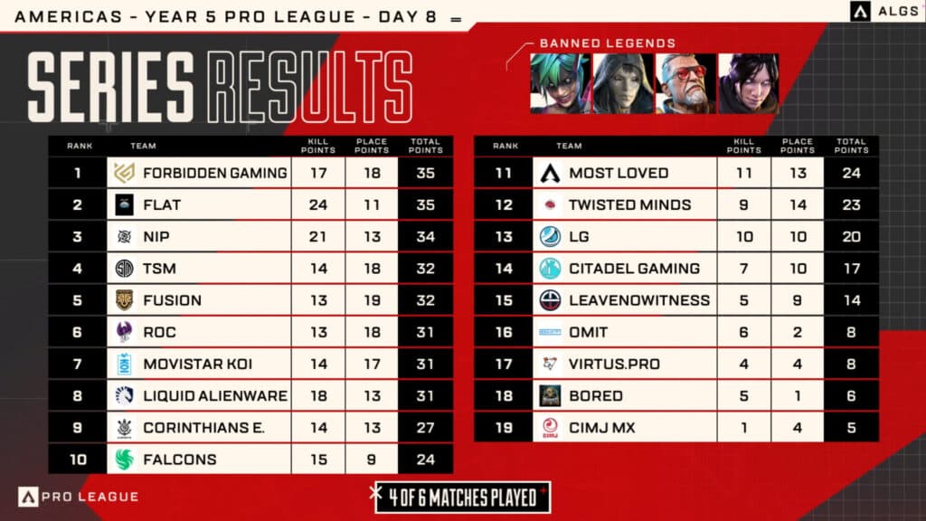 With things heating up as Regional Finals approaches, todays Americas ALGS Pro League action was one of the closest lobbies we have seen across the entire split. Heading into the final two games, just four points separated the top eight teams.