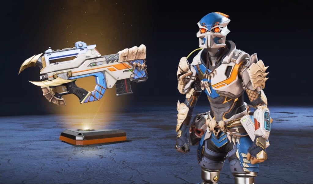 Starting off with Lifeline’s bundle in which she received a matching skin for herself and the Peacekeeper. The skin takes a lot of inspiration from the Predator movies, especially with the Helmet Lifeline wears. Alongside the sleek look of the Peacekeeper skin, it makes sense why this is one of the really featured skins of the event.