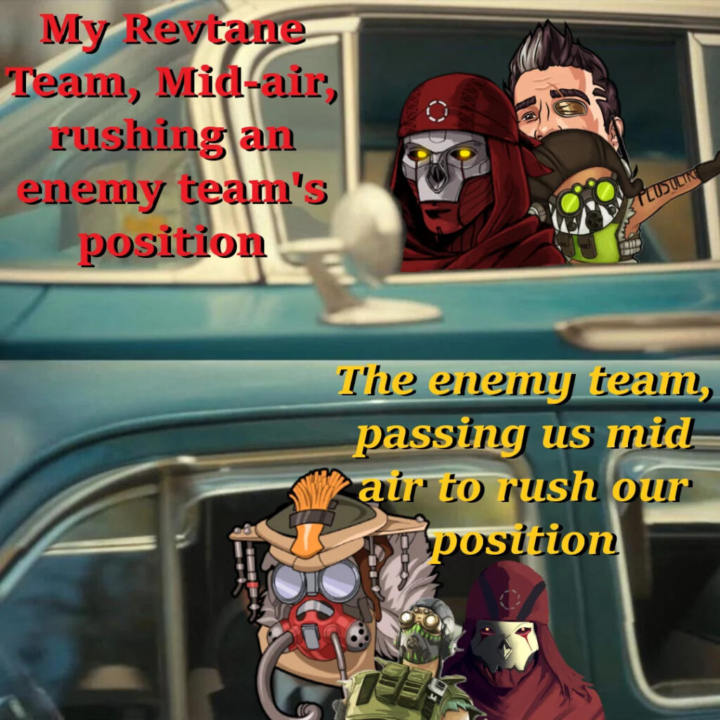 With the buffs to Totem, a devious strategy developed called Rev-Tane. In the legend select team, players would pick the toxic duo of Revenant and Octane. Right before entering a fight, both Revenant and Octane would use their ultimates.