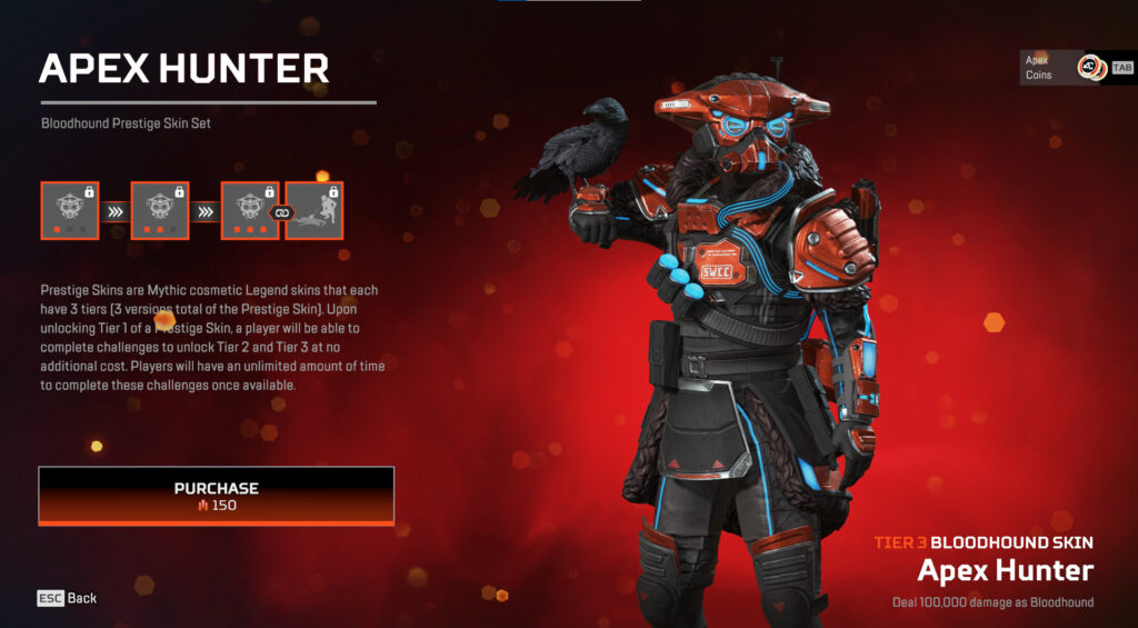 Prestige skins are one of two different mythic items in Apex Legends, with the other being the heirlooms. Both items are released regularly every season with a collection event where they can be unlocked by purchasing every event item. If you miss the event, you can unlock them later by using heirloom shards.