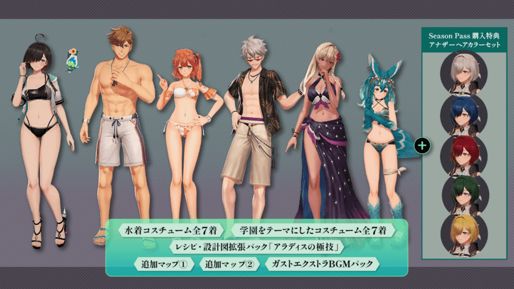 The Season Pass for Atelier Yumia will cost 5,060 yen ($44.99 USD) and contain a selection of items: