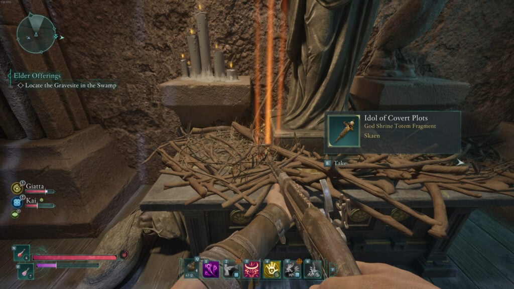 The Idol of Secret Hatred is one of the tricker pieces to find. You have to travel inside the Ancient Grotto dungeon to snag it, which is just northwest of the Naku Tedek Grounds. Fortunately, it’s right by a fast travel beacon. Inside the Ancient Grotto, you’ll find the Idol of Secret Hatred sitting on a table next to a skeleton. However, to reach the idol’s location, you have to head down a small path that’s pretty well hidden.