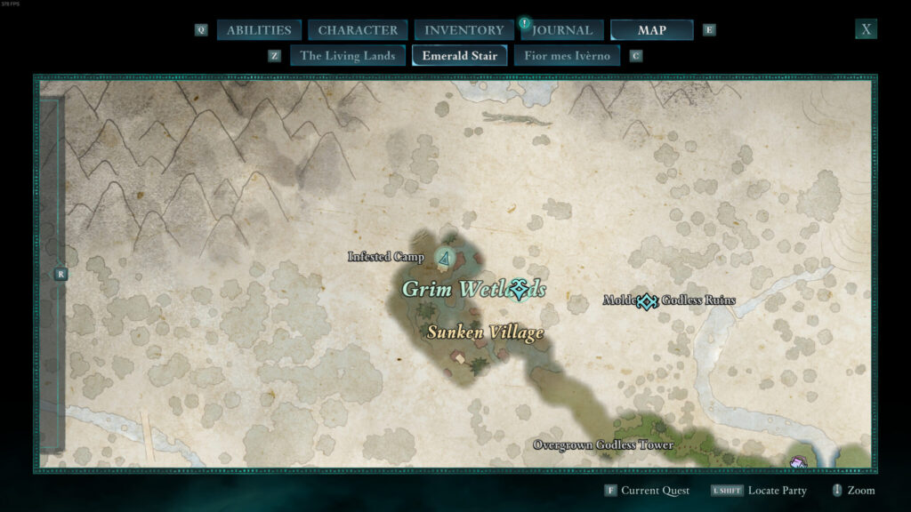 Coming up next is the Idol of Covert Plots, which is fairly out of the way in Emerald Stair. It’s located slightly north of the Sunken Village in the very northern part of the region. From the village, go north and head inside a ruined building that’s right near the water. Inside the building, you’ll find the idol lying on some branches in front of a statue.