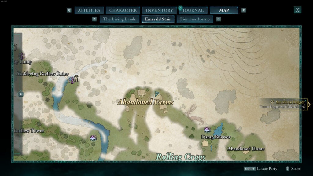 The Sacrificial Dagger is another easy find, as all you have to do is travel to the Abandoned Farms in the northeastern part of Emerald Stair. At the farm, head to one of the central barns, go around to the backside of it, and pick up the dagger that’s been pinned to a note on the wall.