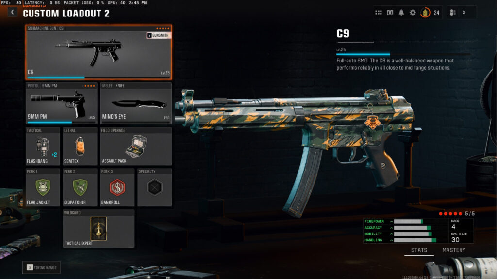 This C9 loadout accomplishes everything you want it to when it comes to an SMG. You have sharp mobility boosts along with improvements in both firepower and accuracy.