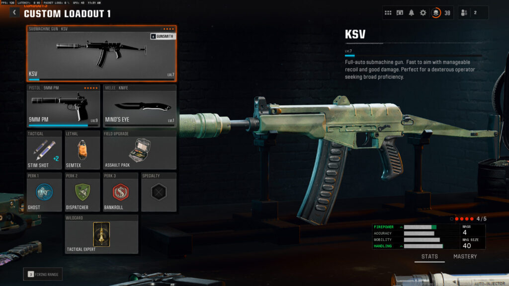 Finally, you can equip a set of perks and a wildcard to complete your KSV loadout. The wildcard you choose will depend on your level, as the best one isn’t unlocked until level 54. However, for the perks, you can equip most of the ones you need at a decently low level.