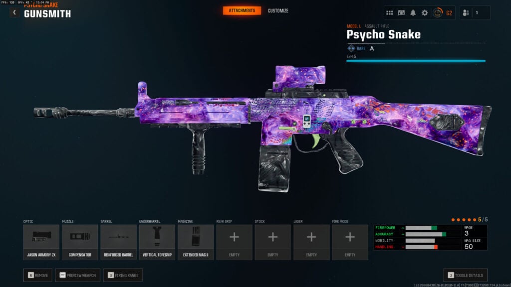 The Model L only really needs five attachments to succeed in Warzone, so we wouldn’t worry about equipping Gunfighter. With the loadout we’ve crafted, you’ll see all your major stats increase with the exception of handling. However, as the Model L is best suited for longer range fights, you’ll want your secondary weapon, such as the Jackal PDW or PP-919, to handle those close range engagements.