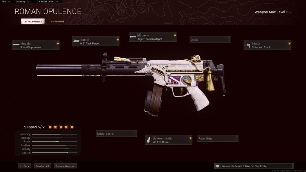 Finally, there’s the 40 Rnd Drum, which gives you an extra ten rounds over the standard loadout. This will truly give you the best MP5 loadout for Warzone, as the extra rounds ensure you’re downing and killing opponents in one clip.