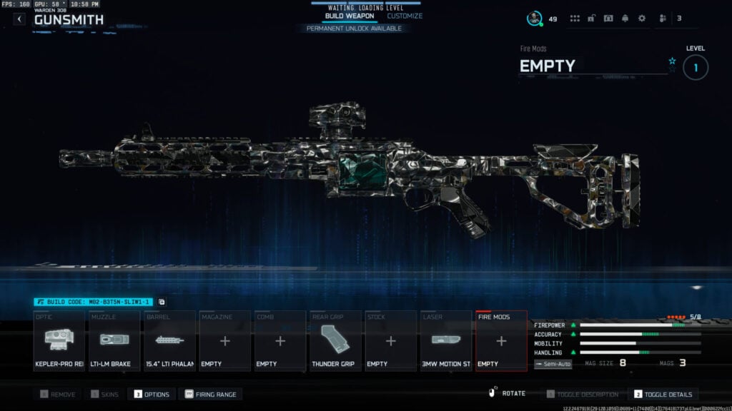 While it is a marksman rifle, you should still treat the Warden 308 as a sniper. The primary reason it’s not a sniper is due to its low damage and strange fire rate, which is a mix between bolt-action and semi-automatic shots. With the right attachments and playstyle, though, you can make the Warden 308 a lethal quickscoping option in Black Ops 7.