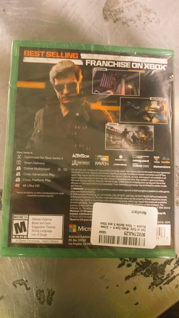 As we can see from the game case, this is an Xbox copy of Black Ops 6. The case says the game is "optimized for Xbox Series X" and contains all of the normal features you'd expect from a Call of Duty title.