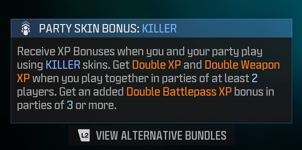 There are three bonuses you’ll receive if you equip the Operator skin, or other Killer skins, alongside fellow party members: