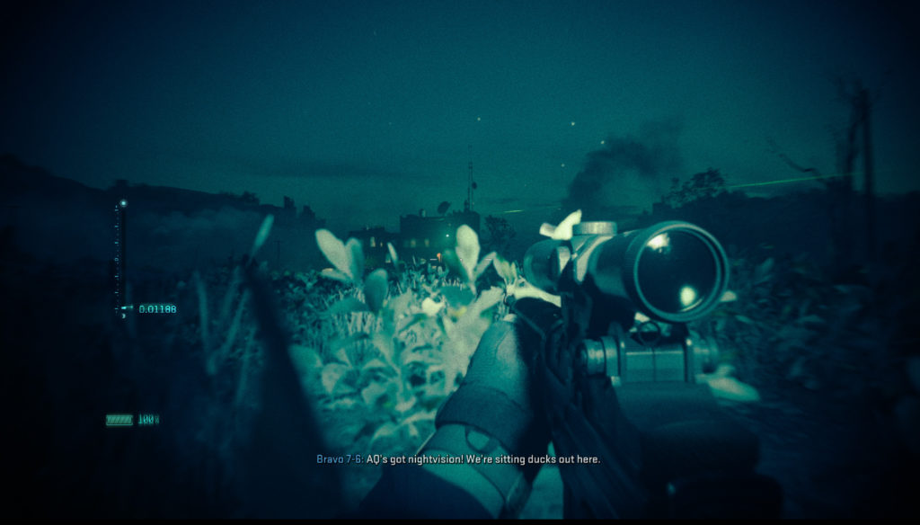 But before you can save your allies, you need to clear 2 buildings in the search for Hassan. As long as you follow your squad with your night vision goggles on, there shouldn’t be much difficulty. However once you get into the building, enemies can pose an issue. However, you are equipped with good tools to deal with enemies. Your EBR-14 sniper can make quick work of enemies at long range, clearing them in one hit in most cases. While your secondary weapon, the VEL-46 can clean up at short range.