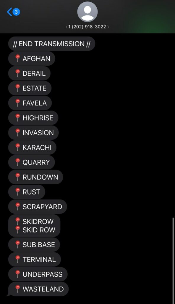 The number answers back with the same map names in all caps beside a location marker. Here is a look at all of the maps we were able to confirm for MW3: