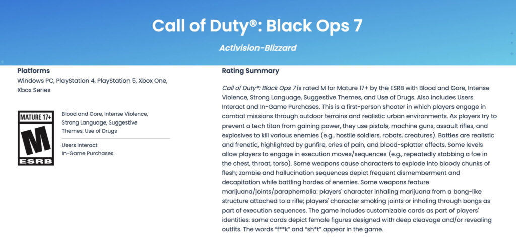 The ESRB recently rated Call of Duty: Black Ops 7, which confirms the game is completely the necessary steps for its release later this year. While the rating itself isn’t surprising — Call of Duty is always rated “M” — the description for the game is what drew some eyes from the community.