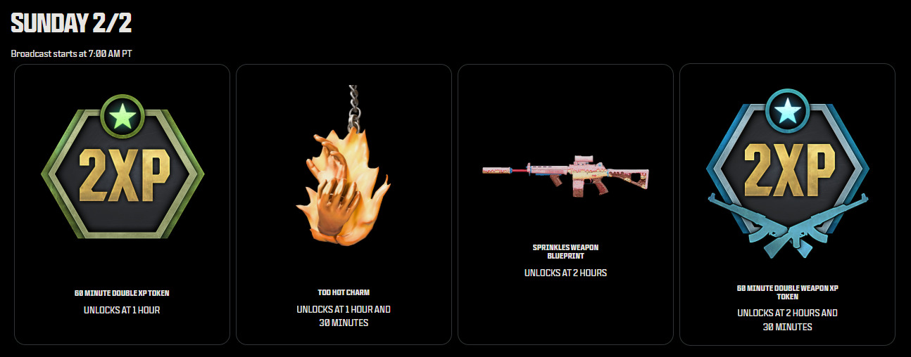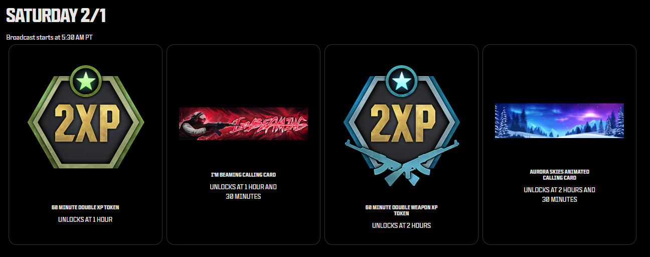 - 60-minute Double Weapon XP Token – Unlocks at 2 hours