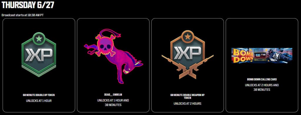 - 60-Minute Double Weapon XP Token – Watch for 2 hours and 30 minutes