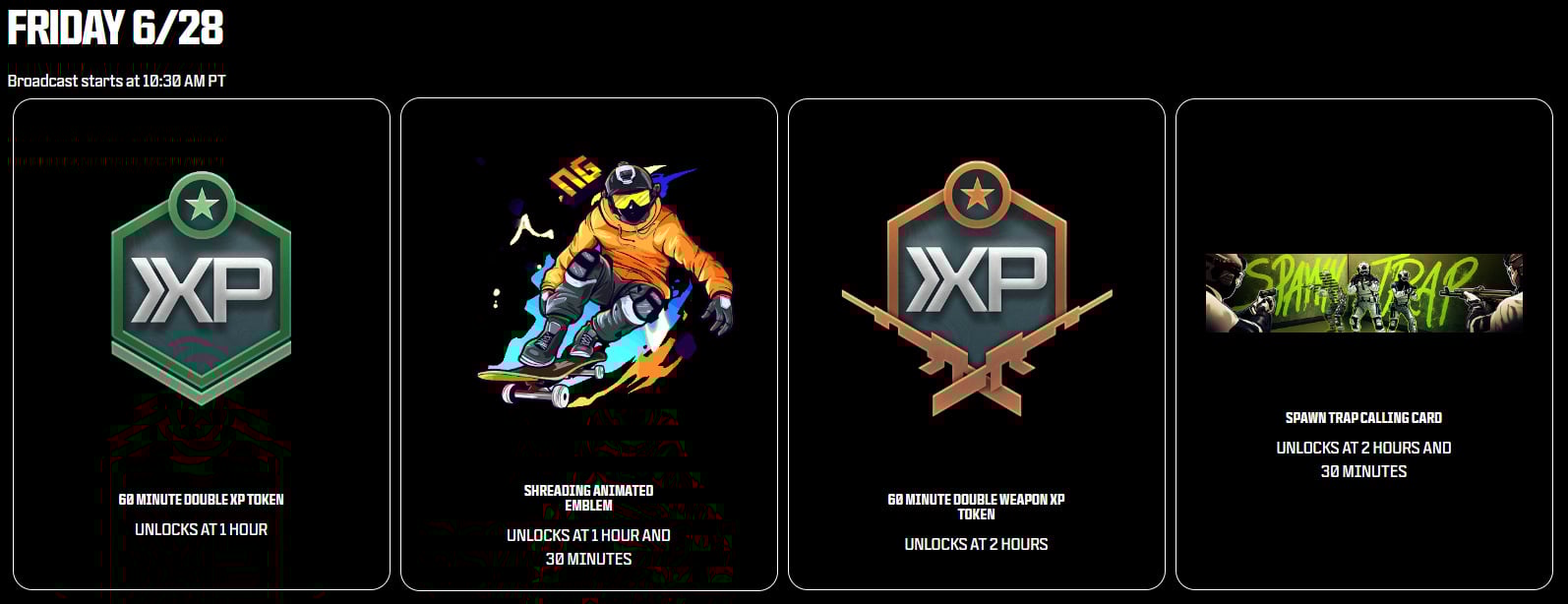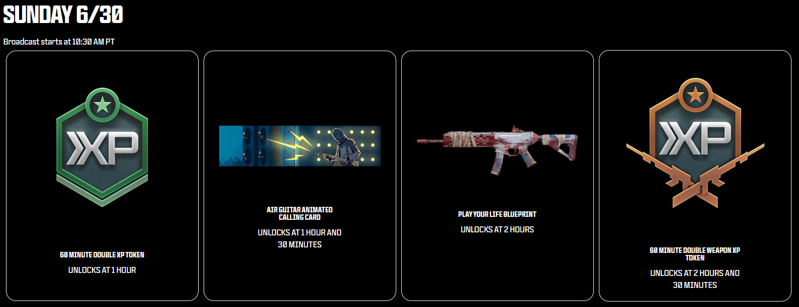 - 60-Minute Double Weapon XP Token – Watch for 2 hours and 30 minutes