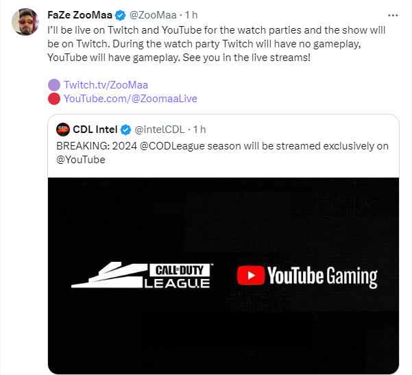 However, both confirmed that they will hold watch parties for portions the 2024 edition of the Call of Duty League. ZooMaa announced on the other hand that the Twitch broadcast will not have images of the match.