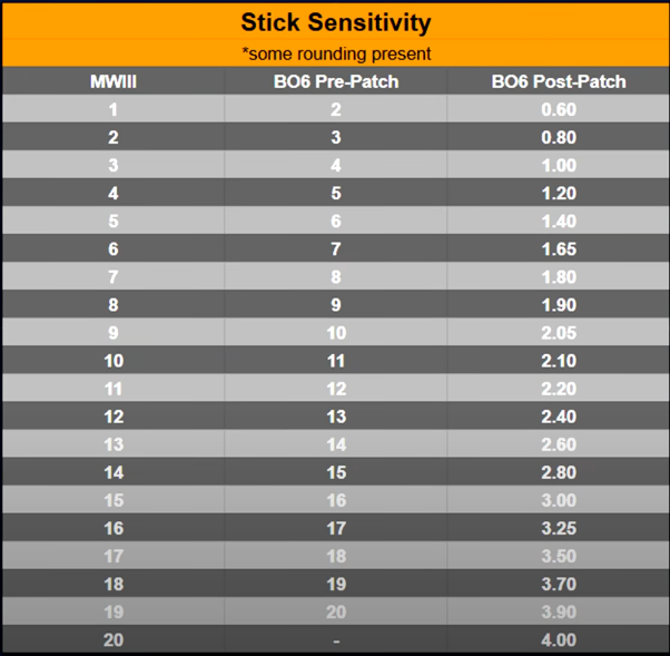 First and foremost, we need to address why Treyarch’s sensitivity chart is wrong. The new sensitivity scale uses values from 0.0-4.0 and Treyarch posted conversions for the new scale so players could easily convert their previous 1-20 sensitivity following Season 1 Reloaded. According to many different sources, though, namely TheXclusiveAce, the conversions Treyarch posted are off by slim margins.