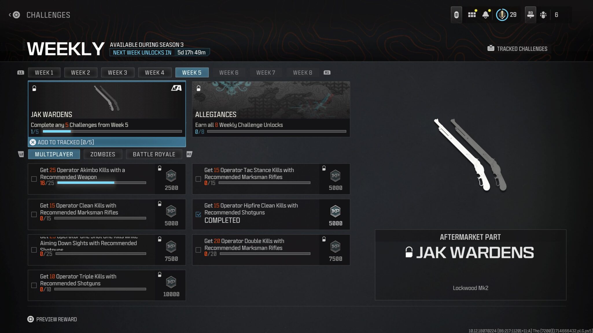 After you finish the five challenges, the JAK Wardens is yours for the Lockwood Mk2 in MW3. The Aftermarket Part comes Akimbo, and the only attachments you can alter are the muzzle, laser, optic, and ammunition.