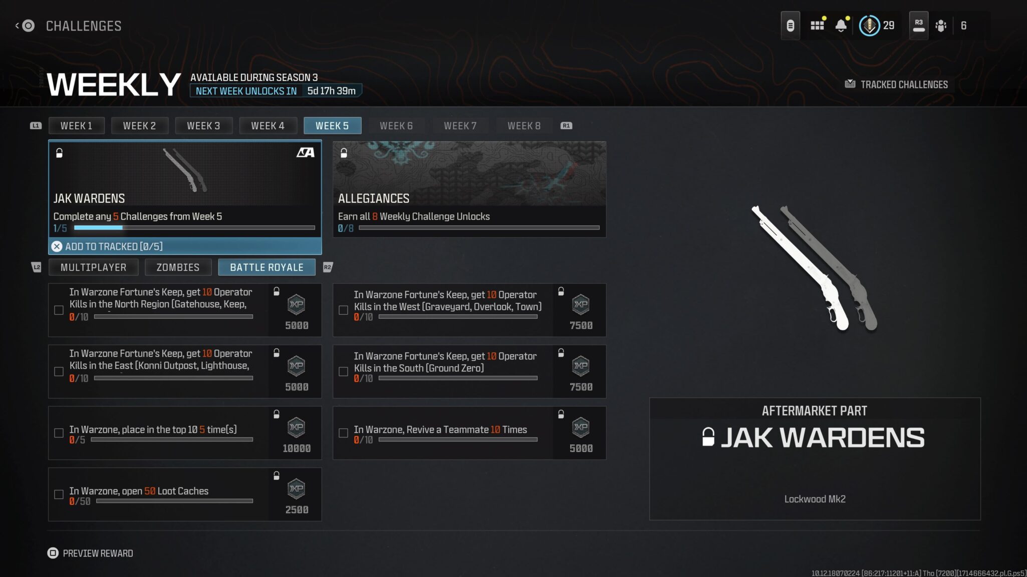 - In Warzone, place in the top 10 5 times