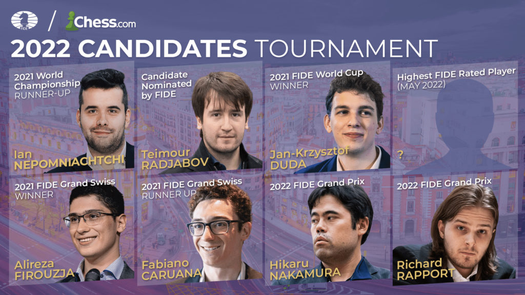 Note that Russian Grandmaster, Sergey Karjakin was supposed to compete in the Candidates Tournament. However, he was disqualified and banned for six months after declaring his support for Russia. His appeal is currently pending and whether he will be able to play or not is still unknown. The final candidate will be determined by May 1, 2022. The Candidates Tournament will begin on 16 June to 7 July in Madrid, Spain.
