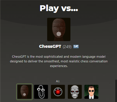But all its glory ends now, as Mittens has been removed from Chess.com. In the shoes of the cat bots, you will see a new line of bots with an A.I (Artificial Intelligence) theme. These bots are ChessGPT, Chippy, Pal 9000, Skyweb, and Agent Chess.