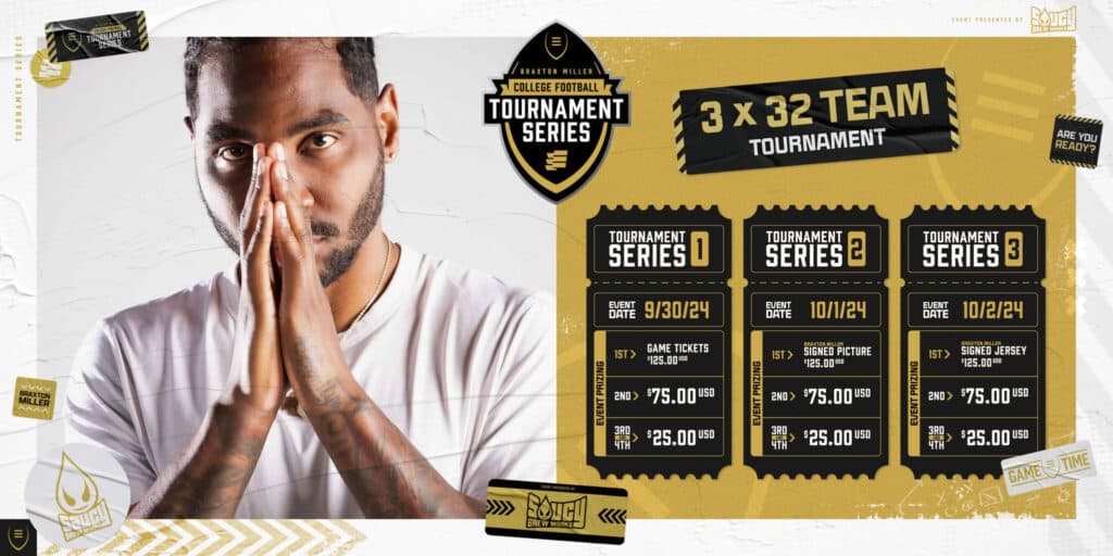 There are three different tournament dates, all with cash prizes and special grand prizes for whoever takes first place. So, let's go over when you can play the Braxton Miller College Football Tournament Series presented by Saucy Brew Works and what you can win.