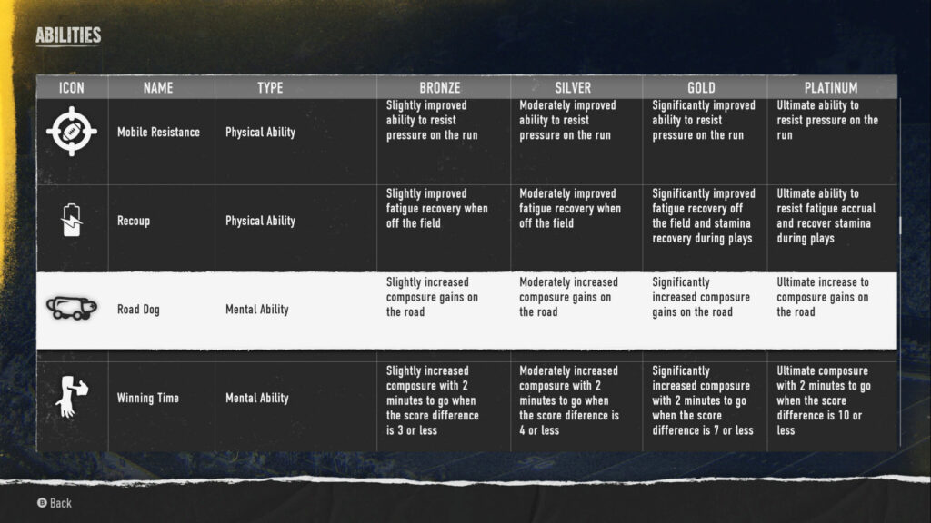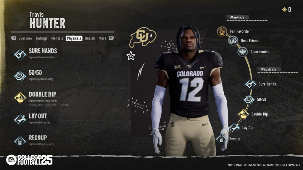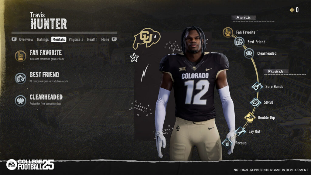 Players like Travis Hunter will have several abilities across both physical and mental categories, as shown in the images above. Players can have up to eight abilities, but they are not guaranteed to “activate” on every play. There will be some elements of RNG involved.