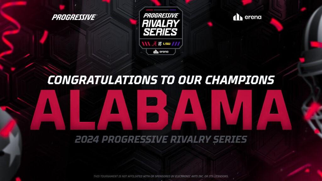 After an intense matchup and Alabama victory over LSU on the football field on Nov. 9, the two schools took the rivalry online. Progressive Rivalry Series returned from a one-year hiatus to feature Alabama and LSU competing in College Football 25. Current student athletes, star alumni, and influencers representing each school squared off for the goal of earning the title of Rivalry Series champion for their team.