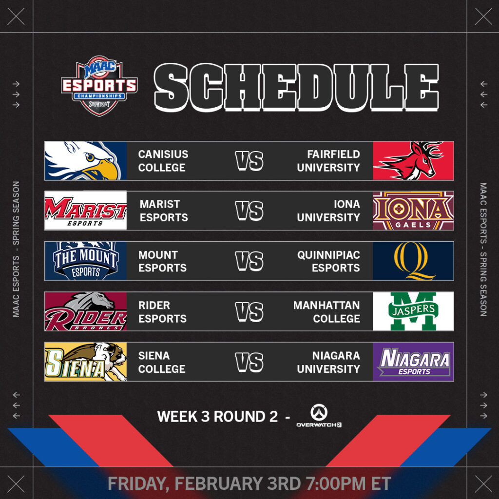 The MAAC Week Three Round One Overwatch 2 schedule.