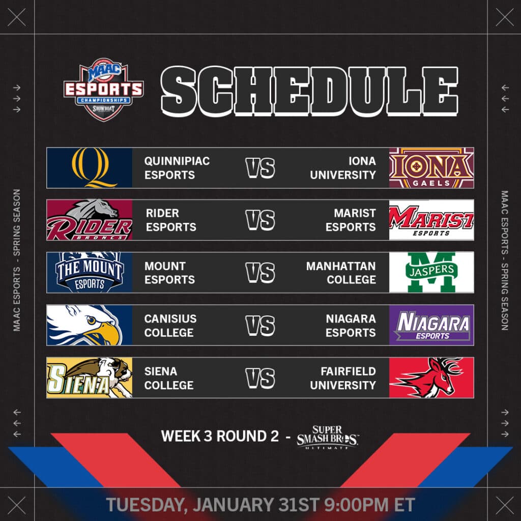 Week Three of the MAAC esports leagues for Smash and Overwatch is here. Check the schedule and slate of games.