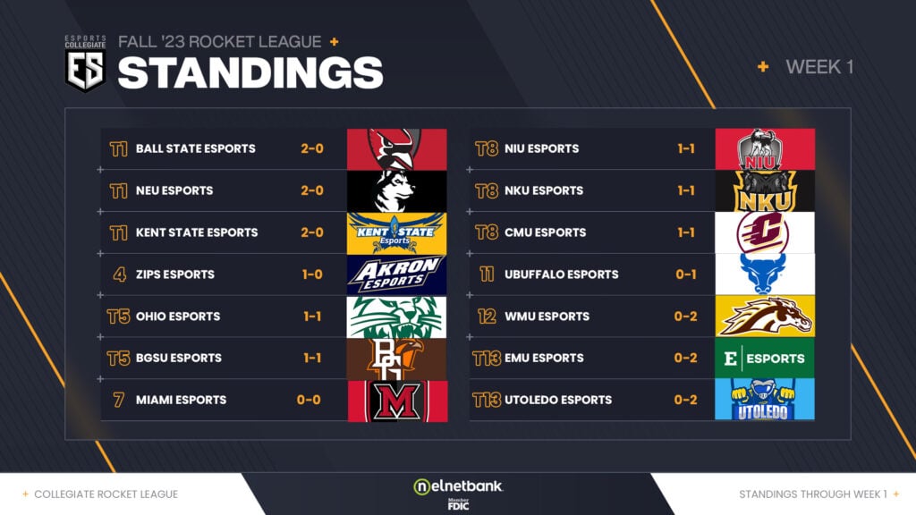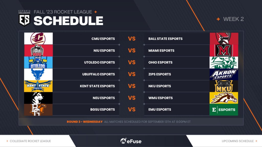 The first Rocket League match to look out for on Sept. 13 is the Northeastern Huskies versus the Western Michigan Broncos.