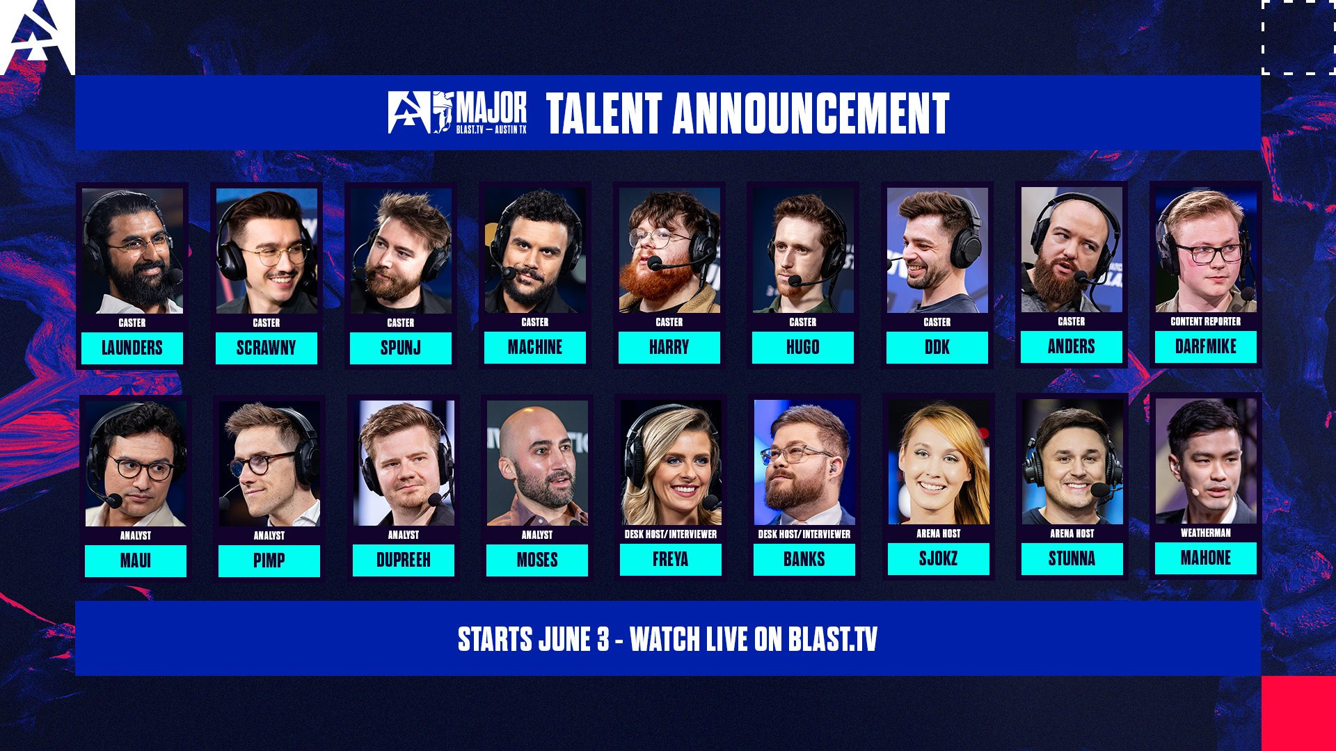 It’s the Austin Major, so we need Major-tier talent and we’ve got it in spades over the next few weeks. Anders “Anders” Blume returns to the microphone at a major for the first time since Copenhagen in 2024, pairing with Counter-Strike and VALORANT veteran caster Daniel “ddk” Kapadia.