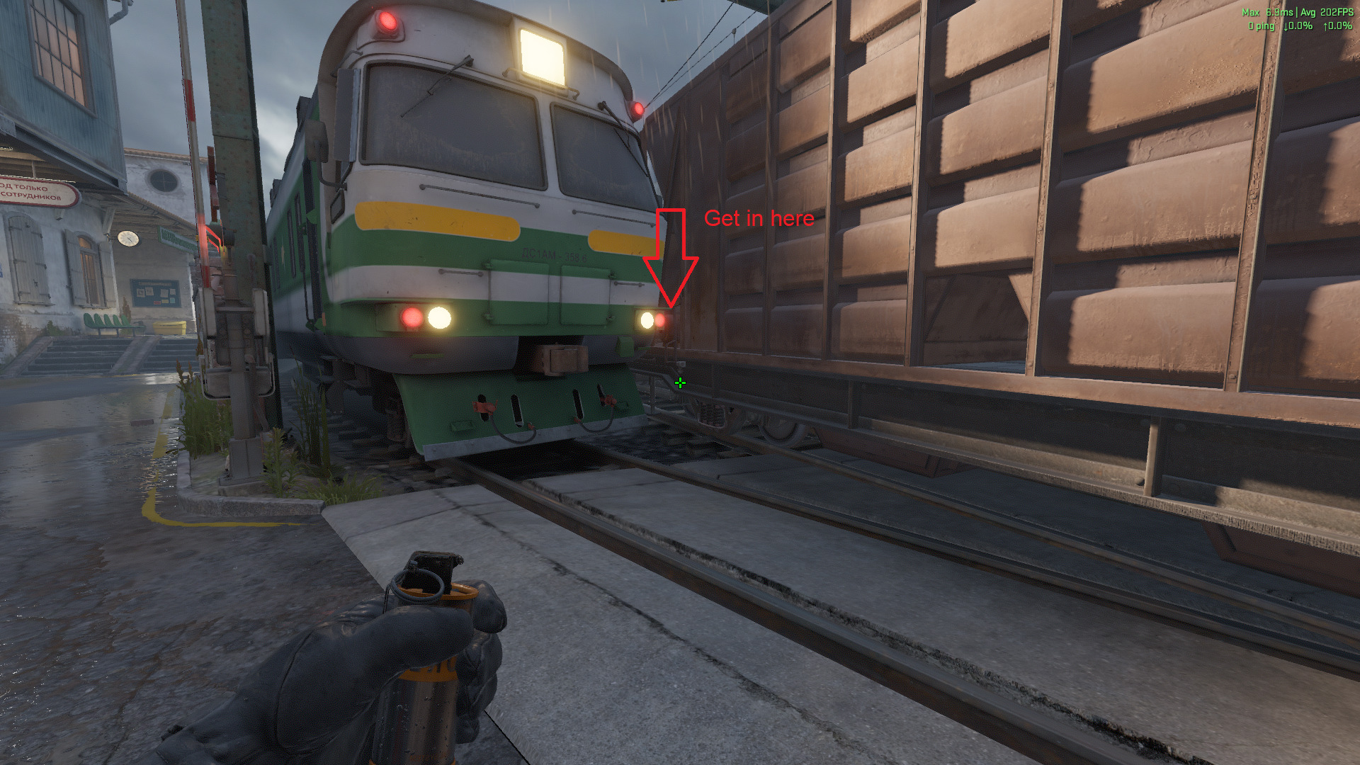 - Get on the corner of the green Train in T-Spawn.