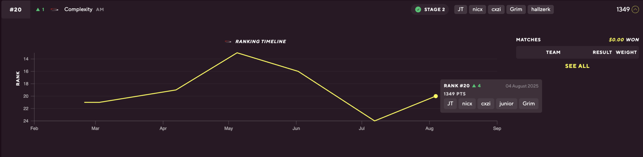 North American esports organization compLexity has exited Counter-Strike 2, releasing its roster amid financial struggle. The roster was ranked #20 in the world.