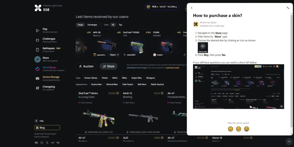 How to earn skins on xplay.gg CS2 servers