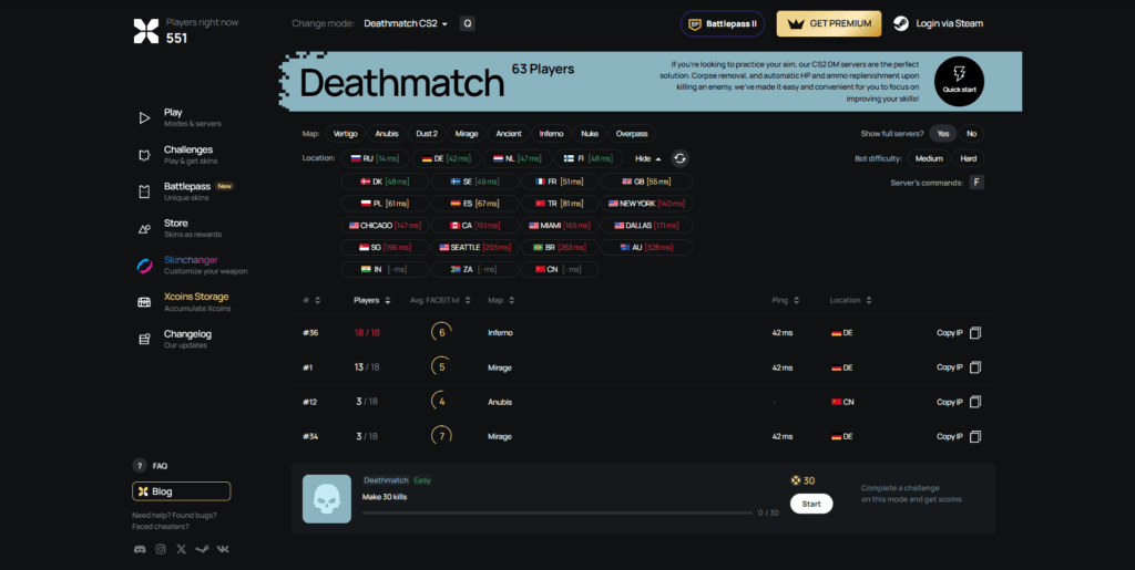 Features of xplay.gg CS2 DM servers