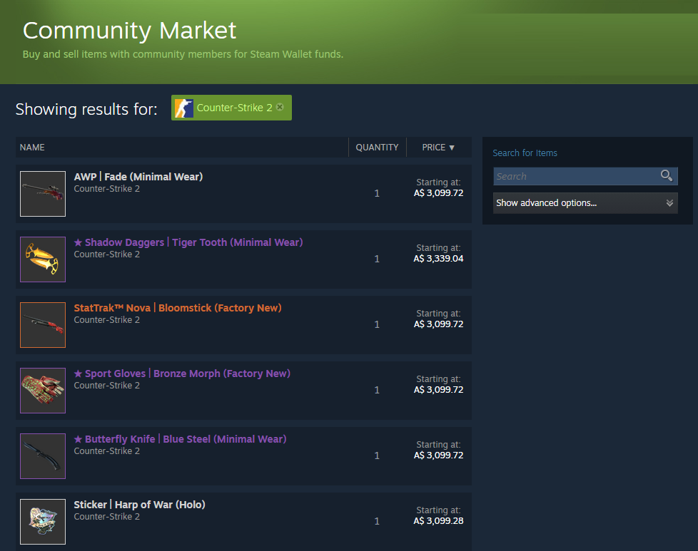 You can also buy cosmetic items for CS2 from the Steam Market or other reputable sites. Most purchases will require Steam Wallet currency. You can visit CS2’s Steam Marketplace for a full list of weapon skins, knife skins, stickers, and other in-game items.