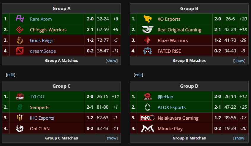 - Group C qualifier. TYLOO proceeds to playoffs.