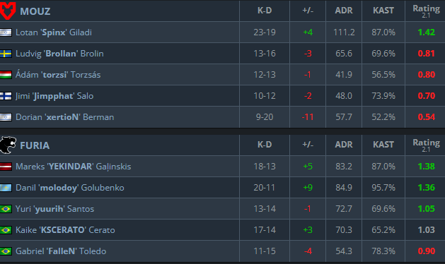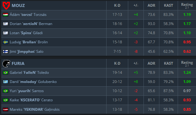 Even with their backs against the wall, the resilience of MOUZ came up clutch. In a very close series, MOUZ managed to take down FURIA at IEM Cologne with a 13-11 Inferno win. With the game constantly swinging in the balance, the 2-1 victory of MOUZ sends them through to the semi-finals, where they face Team Vitality.