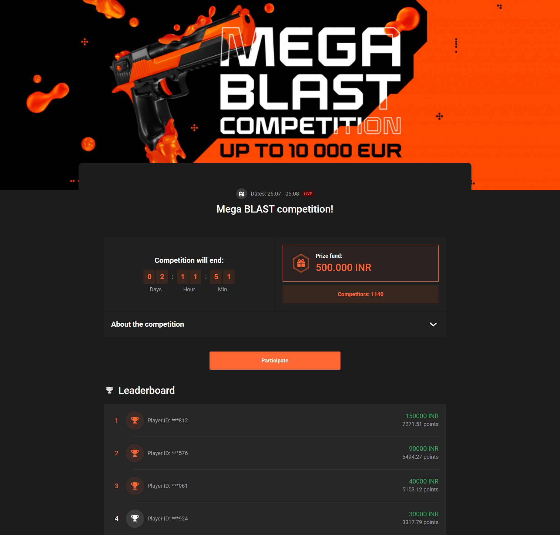 To participate in MEGA BLAST and compete for a share of the €10,000 prize pool and try to win two BLAST Premier Fall Final tickets, all you have to do is follow the steps below: